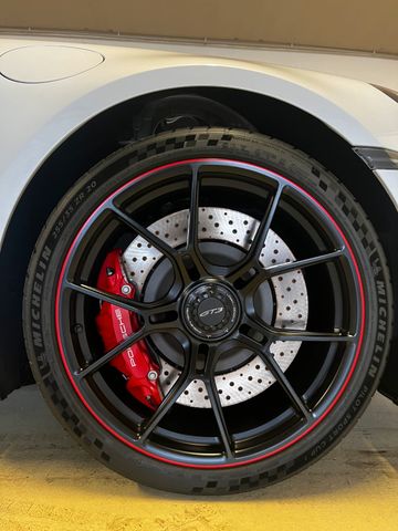 - elektrisch) 4A3 Sitzheizung vorn 2W6 Exclusive Design Tankdeckel ASR Weissach-Paket Logo am Heckflügel farbig rot AMU Modellbezeichnung auf Türen rot 8IV HD-Matrix LED-Hauptscheinwerfer abgedunkelt mit Akzentring in Weiß UD1 LED-Türprojektoren mit „BORN IN FLACHT“ Logo VW7 Privacy-Verglasung FZ1 Sicherheitsgurte indischrot VN0 Zifferblatt Chrono Stoppuhr und digitaler Drehzahlmesser indischrot QE3 Ablagenetz Beifahrerfußraum 2UH Liftsystem Vorderachse 8LH Chrono Paket 0I4 90 Liter Kraftstofftank G1C 7-Gang Porsche Doppelkupplungsgetriebe (PDK) 7X1 ParkAssistent hinten QQ2 Licht-Design-Paket BOSE BOSE® Surround Sound-System GT-Sportlenkrad in Race-Tex schwarz Rückfahrkamera PASM Sportfahrwerk Leichtbau-Edelstahl-Sportabgasanlage mit 2 zentralen Endrohren in Schwarz Servolenkung plus C2Q 20-/21-Zoll 911 GT3 Aluminium Leichtbau-Schmiederäder 1NF Räder lackiert in Schwarz (seidenglanz) mit umlaufendem Felgenrand lackiert in Indischrot 1G8 Reifendichtmittel mit elektrischem KompressorListenpreis netto: 210.489