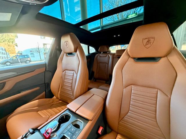 - schall- und wärmegedämmt Lamborghini-ANIMA-Wahlschalter Offroad-Modus Leder 6 Modi Ambientebeleuchtungspaket Auspuffendrohre in Schwarz matt Teppiche und Fußmatten passend zur Grundfarbe Kopfstützen mit gesticktem Lamborghini-Logo Sitzheizung vorne und hinten Vollelektrischer Vordersitze mit Belüftung und Massage Panoramadach Parkassistenzpaket mit Fernparkfunktion Sichtschutzglas akustisch und wärmedämmend Lamborghini-Logo hinten in Hochglanz Sicherheitsgurte Nero Ade Raucherpaket Beheiztes Sportlenkrad in Corsa Tex schwarz Bremssättel 23''-Felgen Galanthus glänzend schwarz Reifen PZero 5 ElectVerkaufspreis netto: 285500